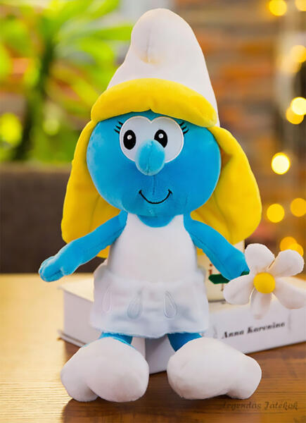 Hupikék törpikék Törpilla plüss 25 cm-es méretben. Törpilla törp a Hupikék törpikék című rajzfilmsorozat egyik szereplője. Ő az egyetlen lánytörp a faluban, akit eredetileg Hókuszpók teremtett, hogy elcsábítsa a törpöket. De Törpapának sikerült átvarázsolnia őt egy kedves és szép törplánnyá, aki sok kalandban vesz részt a többi törppel. Törpilla törp baráts