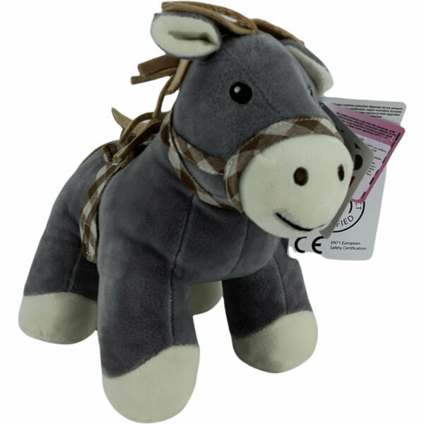 Plüss Póni 25 cm szürke - Artesavi Plüss Póni 25 cm szürke - Artesavi. Ez a spanyol tervezésű cuki plüss póni kisfiad kedvenc játéka lehet. Speciális plüss anyagból készült, emiatt akár újszülötteknek is adható. A szintén plüssből készült sörénye és farka bohókás kinézetet biztosít neki. A barna kockás vászonnyereg és kantár levehető róla. A spanyol Atesavi