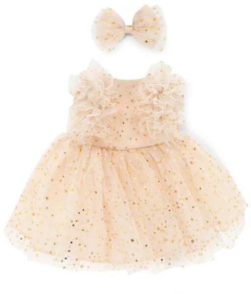 Lucky Doggy kiegészítő ruha - csillámos, tüllös ruha - Orange Toys Lucky Doggy kiegészítő ruha - csillámos, tüllös ruha - Orange Toys. Ezzel a divatos tüllös ruhával átalakíthatod plüss Lucky Doggy kutyád stílusát. A készletben a pici, arany csillagokkal díszített, tüllös ruha mellett egy masni is van, amit egy kis csat segítségével bele lehet tűzni a kutyus hajába.