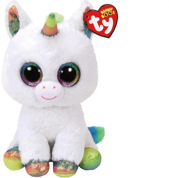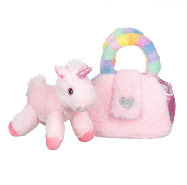 Rózsaszín egyszarvú nagy csillogó szemekkel és csillogó szarvval, plüss táskával. Mérete: 20x10x24 cm