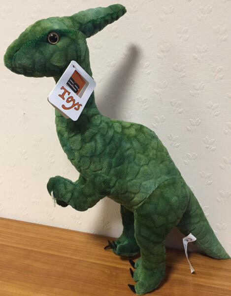 A puha tapintású Parasaurolophus, egy aranyos és vidám dinoszaurusz plüssfigura. Megnyerő, barátságos zöld színében kisebbeknek és nagyobbaknak kedvence lesz. Elkíséri őket az oviba, vagy a barátokhoz, este pedig őrzi álmukat. Ahogy kedvenc dinód rád néz a boci szemeivel, nem tudsz neki ellenállni, azonnal megöleled őt. Játssz vele, és ő felvidít téged. Ez az édes pl