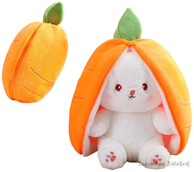 Sárgarépába zárható fehér nyuszi plüss 18 cm. Kiváló minőségű puha nyuszi plüss. A saját füleibe, mint egy sárgarépába lehet bele cipzárazni.