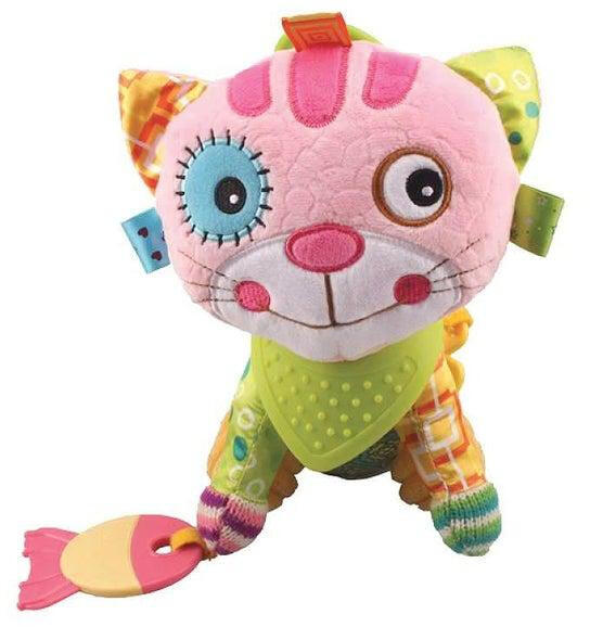 Charles macska puha anyagokból készült és rágókákkal felszerelt. A cica különböző anyagokból készült, (plüss, textil, pamut, stb) amelyeket a gyermek felfedezhet, ezáltal fejlődik az érzékelése. A fején színes szalagok találhatóak, a lábához egy hal alakú rágóka van erősítve, de Charles sálja is rágókaként funkcionál. Gyermeked imádni fogja és hű társa lesz