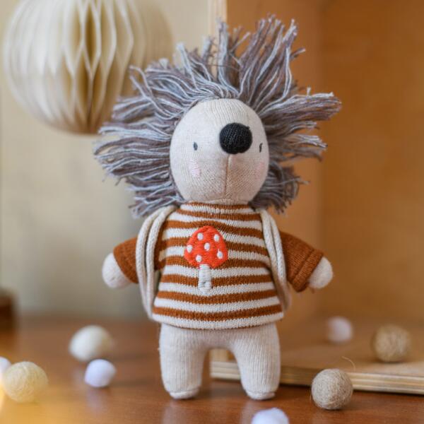 Karácsonyi sündisznó Csíkos pulóver aranyos, gombás mintával, és egy vagány hátizsák. Így várja a mosolygós sündisznó az ünnepeket, a közös, családi ünneplést, és persze az azt követő közös kalandokat. Puha anyagának köszönhetően egy igazán ölelni való jóbarát, akire mindig lehet számítani. A prémium ava&yves plüss játékok nem hétköznapi dizájnjukka