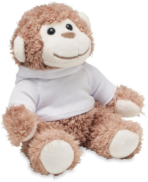 Plüss majom figura Kapucnis pulóvert viselő plüss majom. A pulóver ideális szublimációs nyomtatáshoz.