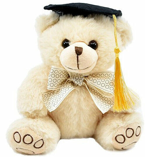 Aranyos 20 cm-es plüss maci fején ballagási kalappal. A sapka fekete színű szövetből készült, négyzet alakú, és egy sárga bojt lóg az egyik sarkán. Ez teszi a bájos kis mackót igazán ünnepélyessé. Ötletes és ideális ajándék végzős hallgatóknak, ovis...