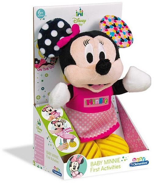 A Minnie egér plüss játék nem csak a képzeletet támogatja, hanem a szenzoros fejlődést is. Különböző textúrák fedik a testét. Füle csörgő anyagból készült, lába gyűrögethető, könnyen meghúzható, cipője pedig rágóka. Ha a kis tulajdonos megnyomja a plüss pocakját, érdekes sípoló hangot ad ki, ráadásul bárhol remek társ lehet, mert felakasztható a kiságyra v