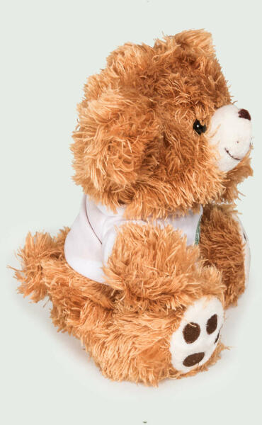 Fradi plüssmaci Világosbarna, pihe-puha plüssmaci, fehér pólóval, rajta a Ferencváros címerével. Mérete: 25 cm