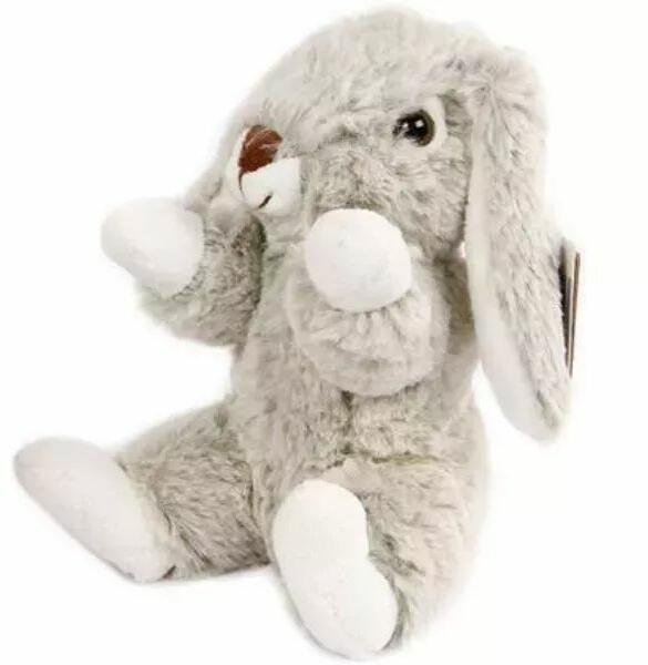 Nyuszi, hopp!Ezt az imádnivaló, pihe-puha, szürke és fehér színű, ülő nyuszi plüssfigurát kicsik és nagyok bármikor átölelhetik, történeteket játszhatnak el vele, magukkal vihetik az oviba, a suliba vagy a nyaralásra, de akár alvótársukká is fogadhatják. A figura kidolgozása igényes. Tökéletes ajándék lehet nyuszirajongóknak, vagy akár húsvéti meglepetésként is