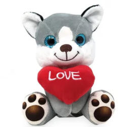 A megjegyzésben kérjük tüntesd fel, hogy melyik változatot szeretnéd! Kedves plüss játék. Egy ülő plüss kutya, akik egy szivecskét tart az mancsában. Tökéletes ajándék mindenkinek, aki különleges helyet foglal el a szívünkben. Az Ülő kutya szívvel plüss játék mérete: 14 centiméter.