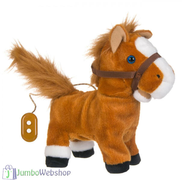 Kábeles távirányíthatóval irányítható plüss lovacska. Nyerít és sétál. Mérete: 29x11x24 cm *3 db AAA elemmel működik, mely tartozéka a csomagnak. **Nem alkalmas 3 év alatti gyermekek számára