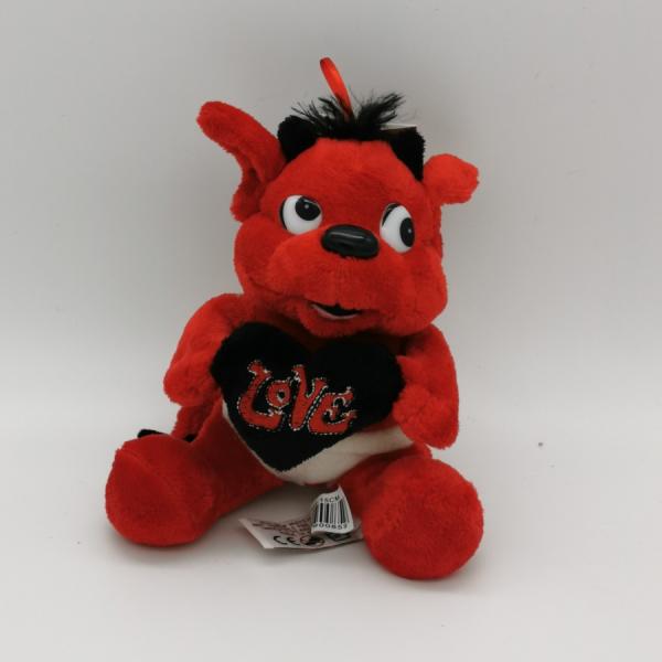 Plüss Szívecskés Ördög Méret: kb. 15cm Anyaga: festett plüss Belső töltet: 100% poliészter Tisztítása: 30 °C vízben Ajánlott: 3 éves kortól