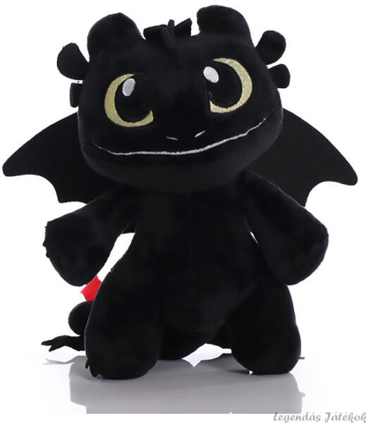 Így neveld a sárkányodat - Fogatlan Éjfúria álló plüss 20 cm. Night Fury, Fényfúria vagy Fogatlan, egy rendkívül ritka és titokzatos sárkányfajta, melynek az egyetlen ismert példánya a főszereplő, Hiccup (Hablaty) legjobb barátja az Így neveld a sárkányodat animációs mesefilmekben. A Night Fury fekete színű és kompakt testalkatú, egyedi jellegzetessége pedig a száj k