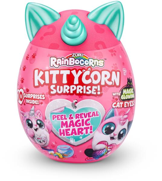 Zuru Rainbowcorns Cicakornis meglepetés plüss játék A Rainbocorn a tökéletes meglepetéstojások, amelyek a titokzatos kicsomagolást imádnivaló meglepetésekkel ötvözik! Fedezd fel a Rainbocorns új, imádnivaló cicáit. Nyisd ki a tojást, hogy felfedd új szőrös barátod. Imádni fogod ezeket a szuper puha plüssöket ragyogó szemekkel és bolyhos bundával! 6 cicát gyűjthetsz