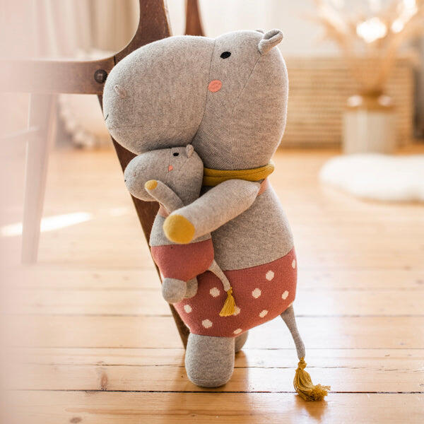 Klea mama és babája A víziló mama és babája plüss játék izgatottan várja a közös kalandokat. Puha anyagának köszönhetően egy igazán ölelni való jóbarát, akire mindig lehet számítani. Szerinted milyen magas Klea mama? Állva eléri a 40 cm-t is! A prémium ava&yves plüss játékok nem hétköznapi dizájnjukkal igazi karakterek! Egytől egyig finom, 100% organikus pamutb