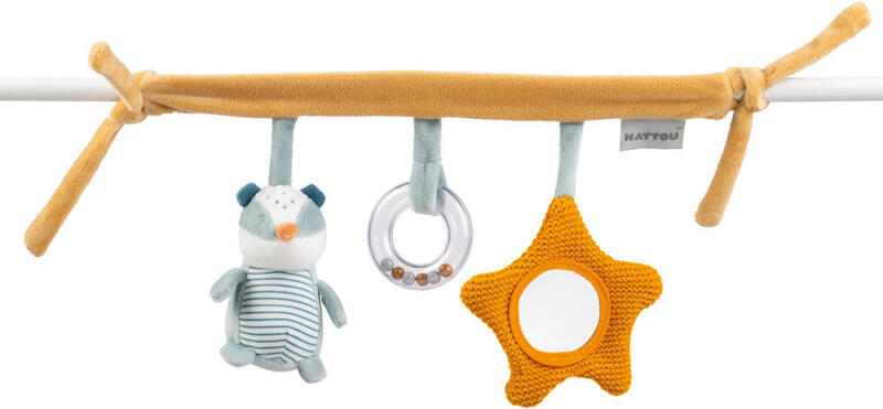 Elindulsz mész a babáddal? Ez a puha babakocsi játék leköti kicsijét útközben. Könnyen rögzítheti az akasztót a babakocsihoz vagy az autósüléshez. A maxijáték 3 szórakoztató elemet tartalmaz, így a baba élvezheti a különféle meglepetések felfedezését és megragadását. A mozgás által keltett kellemes hangok mellett serkentik a baba hallás- és mozgásfejlődését. M