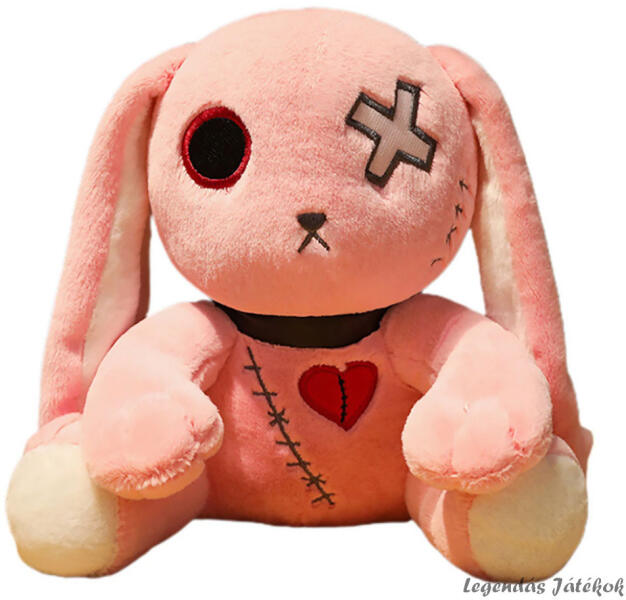 Dark goth stílusú nyuszi plüss, rózsaszín, 25 cm-es méretben.