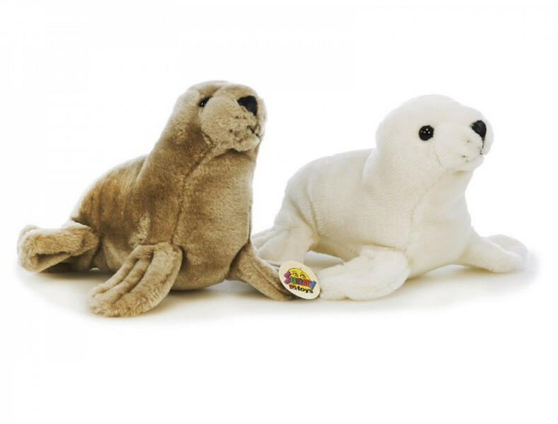 Plüss Grönlandi fókakölyök. Jellegzetes fehér bundájáról jó felismerhető, nagyobb példányok már ezüstös, szürkés bundával borítottak. Ezt a fókafajt főleg Norvégia, Grönland, Izland partjainál és az északon elterülő tengerekben figyelhetjük meg. A plüss puha plüssből készült fókakölyök nemcsak életszerűnek tűnik, hanem nagyon aranyos is. Ideális játékhoz