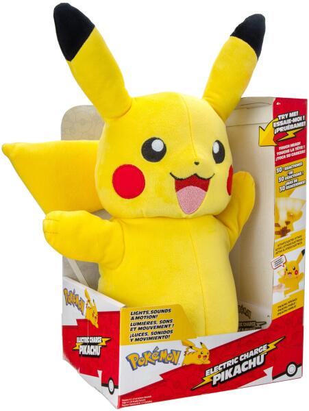 Pokémon interaktív plüss játék, Pikachu A Pokemon Plus mozgásérzékelőkkel, fényekkel és hangokkal rendelkezik. Minél többet interakciózol vele, annál dinamikusabb lesz Pikachu reakciója! Pikachu másképp reagál attól függően, hogy hogyan landol, milyen irányba megy, és még sok minden mástól is!
