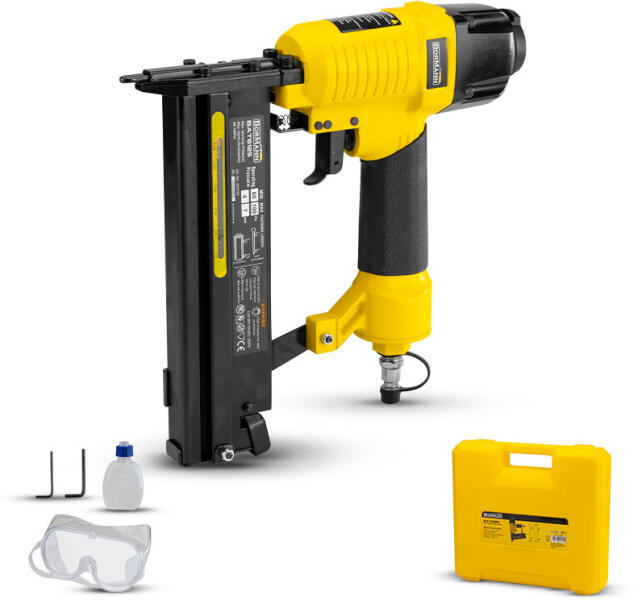 12-es típusú szög (10-50mm) 90-es típusú kapocs (16-40mm) Max. munkanyomás: 60-100PSI Max. nyomás: 120PSI Szögkapacitás: 100DB Tartalmaz: Szemüveg, BMC Csomag méretei: 20x12x30cm Csomagolási súly: 2,8Kg
