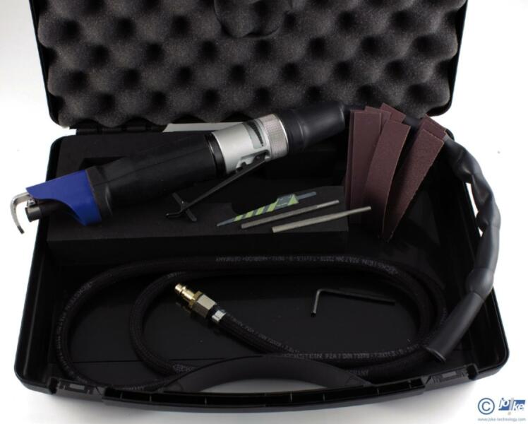 Sűrített levegős reszelőgép LFC 11 Egy univerzális szerszám magas fordulatszámmal (12.000/perc). Ideális csiszoláshoz, reszeléshez, polírozáshoz, vágáshoz, de nagyobb felületek sorjátlanításához is. A fokozatmentesen beállítható lökethosszúságnak (2 és 11 mm között) köszönhetően a készülék egyaránt használható durva és finomabb munkákhoz. A készülék öná