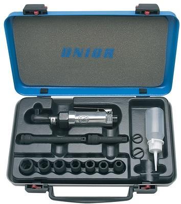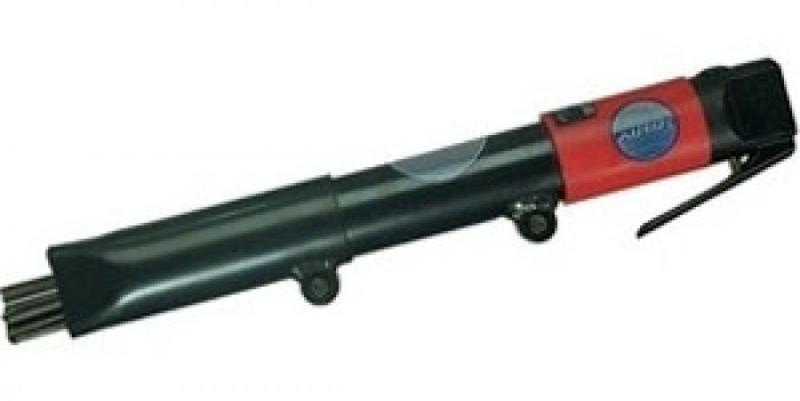 Egyenes kivitelű, kézhezálló, rozsdaleverő 12 db 3 mm-es véső alakú tűvel. A leverőtűk egyszerűen rögzíthetők, a géphez 2 - 3 mm-es egyenes és hegyes kivitelű leverőtűk is használhatók. Max. ütésszám: 3800 ütés/perc Teljes hossz: 343 mm Súly: 1,6 kg Levegő igény: 1,4 l/s Sűrített levegő csatlakozás: R 3/8" Zaj: 97,4 dB(A)