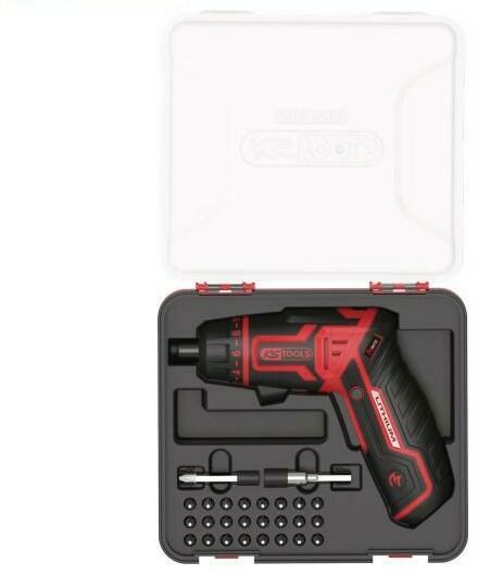 Akkus csavarhúzó készlet, 25 darab bittel, 100 részes bitkészlettel és ajándék vágódeszkával. Előnyök/Kivitel DIN 3126/C 6,3 szerinti bitekhez jobbra-/balra átkapcsoló funkcióval állítható készülékfej mágneses szerszámkeret erőteljes 3,6 V motor nagy teljesítményű lítiumion-akku USB-C aljzatról tölthető integrált akkumulátor 10 fokozatban állítható nyomaték v