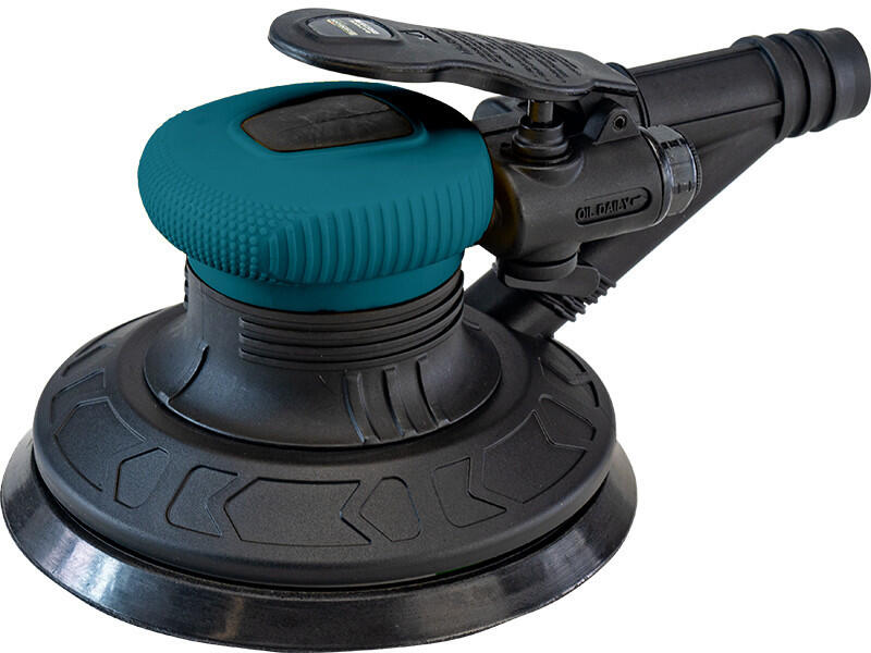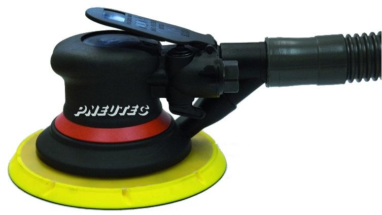 Excenteres csiszoló automatikus porelszívással, porzsákkal. Egykezes működtetés, alacsony vibráció. 5 mm -es rezgési pálya. 150 mm -es tépőzáras csiszolótányér. 240 Watt pneumatikus motor teljesítmény. Max. fordulatszám: 11000 ford. /perc Rezgéskör átmérő: 5 mm Csiszolótányér átmérő: 150 mm Súly: 0,9 kg Levegő igény: 4,6 l/s Sűrített levegő csatlakozás: R 1/4"