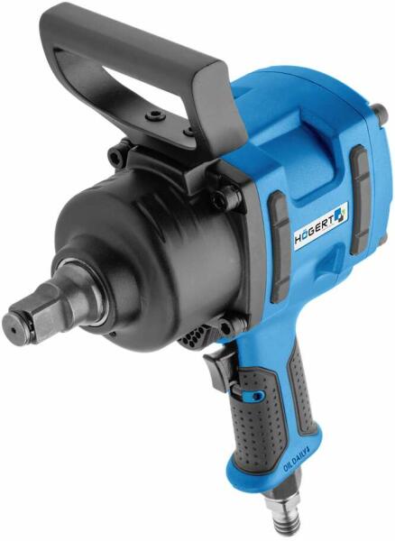 HÖGERT pneumatikus ütvecsavarozó 3/4 1800Nm HT4R625 - tartós alumínium ház - 3 munkasebesség - bal/job irányváltó kapcsoló - légnyílás a fogantyú felső részén - TWIN HAMMER ütő mechanizmus - 3/4 JUMBO hajtás - maxnyomaték: 2400 Nm - levegőellátó mérete: 3/8, 9,52mm - nyomás: 6,3 bar / 90PSI - levegő beáramlás: 583 l/perc - forgási sebesség: 4600 / perc - súly: 7kg