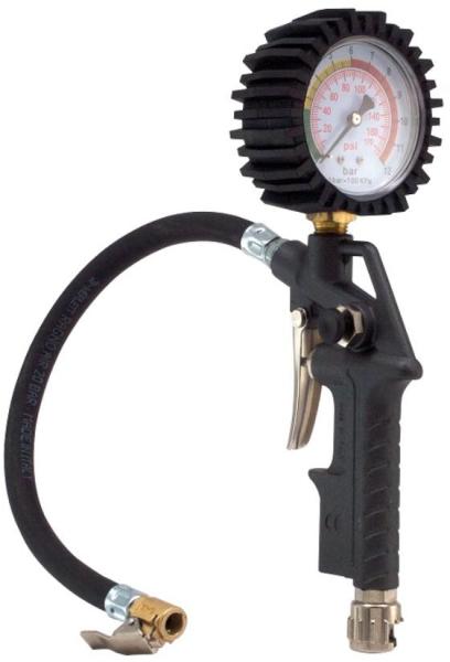 Konfit Abroncstöltő gyorscsatlakozó dugóval és 12 BAR-os manométerrel. A cső hossza 30 cm.