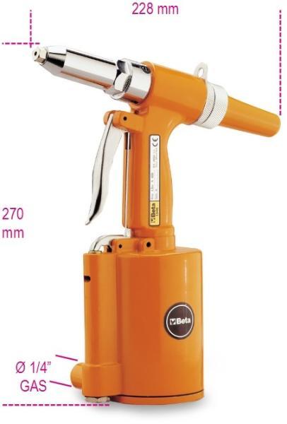 Húzóerő 8000 N Lökethosszúság 14 mm Üzemeltetési nyomás 6,2 Bar Átlagos levegőfelhasználás 1,2 l/cycle Légtömlő belső átmérő 6 mm Max. alumínium szegecs átmérő ? aluminium 4,8 mm