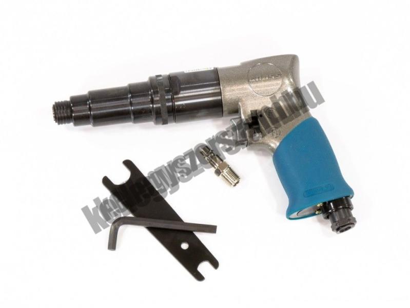 Előnyök:- Állítható nyomaték- Irányváltó- Lehetőség hosszú munkára szünet nélkül- Gumírozott fogantyú - a GROSS G208 57448 pneumatikus csavarhúzóval történő kényelmes munka érdekében légcsatlakozó átmérője: 1/! üzemi nyomás: 6 atm levegőfogyasztás: 212 L/óra fordulatszám: 700/ percmaximális nyomaték: 17 Nm súly:1 kg
