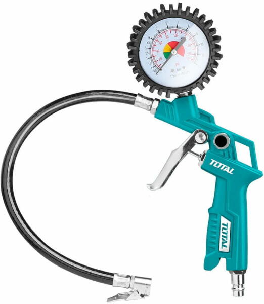 Kerékfújó pisztoly 8,5 bar (120psi) (TAT11601) A TOTAL TAT11601 gumitoló légpisztoly személygépkocsi-szervizekben, műhelyekben és magán garázsokban használható. A pisztoly a pneumatikus elv alapján működik és automatikus. Használata könnyű és nem igényel nagy fizikai erőfeszítést a felhasználótól. A pisztoly maximális nyomása 8,5 bár, ami elegendő erőt biztosít a
