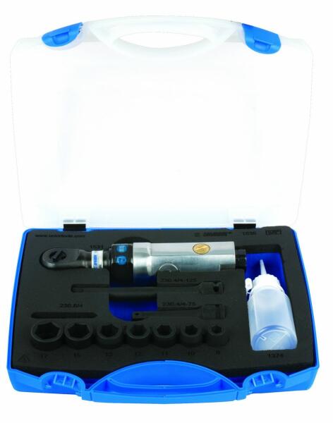 Jellemzők: Kompakt ütvecsavarozó, szerelési munkákhoz (menetes kötések lazítása/meghúzása) autóműhelyek, gumijavító műhelyek, fémgyártás stb. Funkció: jobb/bal sebességváltó, a meghúzási nyomaték pontos beállítása (3 fokozat; 300/800/1000 Nm) Felépítés: 1/2"-es négyszögletes, dupla kalapácsütés, hőszigetelt fogantyú szűrővel a sűrítettlevegő-szűréshez/