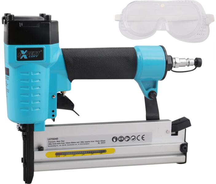 Expert pneumatikus tűzőgép szeg és kapocs belövéséhez Ez a kétfunkciós pneumatikus tűzőgép hagyományos levegőkompresszorhoz csatlakoztatva, 90-es kapcsok és F típusú szögek belövésére használható. - levegőbemenet: 1/4" NPT- tárkapacitás 100 db- szeg hosszúság 10-50 mm (F típus)- kapocs szélesség 5,7mm (90-es típus)- kapocs hosszúság 16-40 mm- kiegészítő munkav
