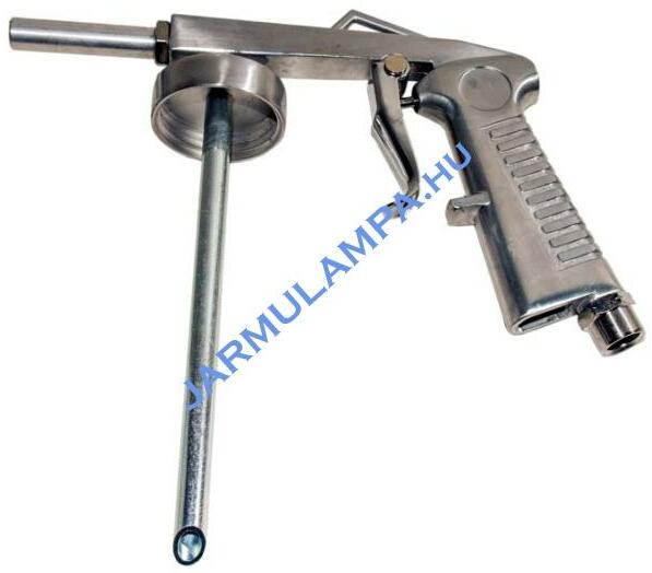 Kiváló minőségű alvázvédő pisztoly, a rozsda és a kőfelverődések okozta károsodás kivédéséhez. Alkalmazható bármilyen viszkozitású alvázvédővel. Szívócső hossza: 175mm Szívócső belső átmérője: 6.35mm (1/4") Fúvóka hossza: 55mm Fúvóka belső átmérú: 6.35mm Rögzítőkupak menetemelkedése: 1-3/4" x 6 UNS (szabvány) Gyors és könnyű szétszerelés a gyorsa