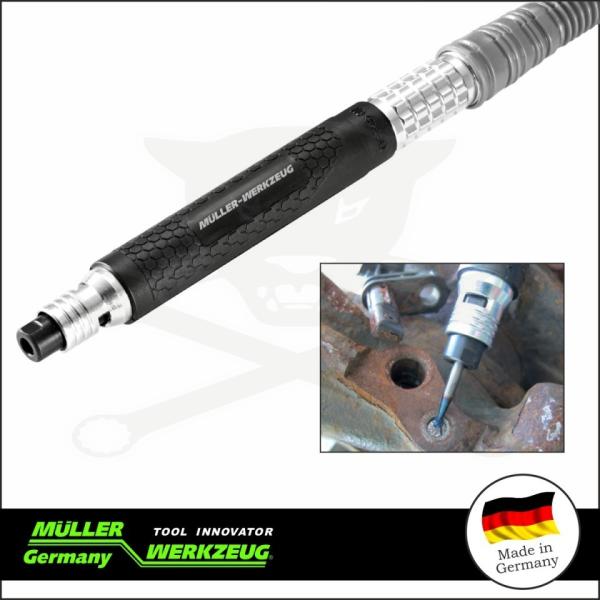 Müller-Werkzeug - Germany Kiváló minőségű, a Német Müller cég által gyártott levegős maró-csiszoló gép, ergonomikus kényelmes cső alakú formába öltve. Nagy teljesítményű, erős és nagyon hatékony levegős maró gépezet, kiválló minőségű gumis fogó résszel kialakítva a profi munka elsajátítása érdekében. Tulajdonságok: - Prémium, minőségű anyaghasználat