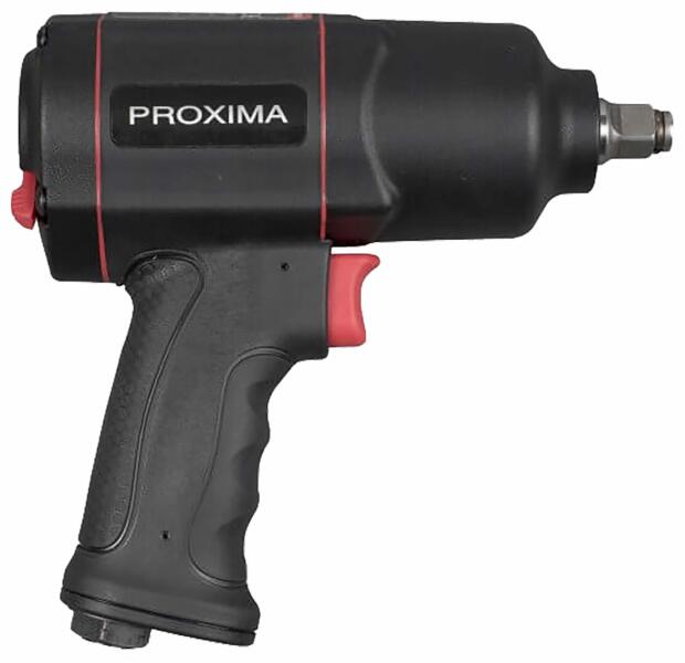 A kulcs összetett anyagokból készült, amelyek garantálják a kis méretet, (2 kg) A maximális ero 1550Nm. Eros 1/2 "légütokulcs 1/4" -vel. Alacsony súly (2 kg) A kompozit anyagú ház gumírozott markolattal jobb kezelési kényelmet nyújt a felhasználónak munka közben 3-fokozatú teljesítményvezérlés jobb és 1-sebességes balra fordulókhoz Alacsony nyomású pneumatikus csavark