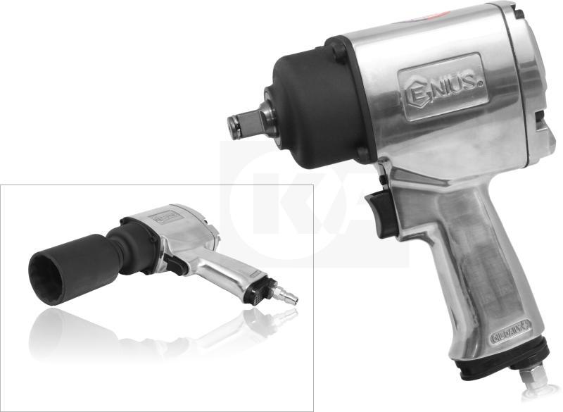 Rövid meghajtó tengelyes légkulcs. Nagy igénybevételhezBefogás: 1/2", négyszög1085Nmlégnyomá s: 620kPa, 6.2barmax. nyomaték: 1085Nmterhelés nélküli fordulat: 7500 fordulat/percszabvány csapfedél: 27mmteljes hossz: 165mmátl. levegőfogyasztás: 128 l/perclevegőcsatlakozás: 1/4"levegőtömlő belső átmérő: 10mm (3/8")Ütőmechanizmus: Ikerkalapácsos (Twin Hammer)Biztonsági f