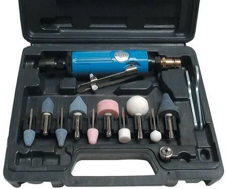 - Rúdcsiszoló - fokozatmentes fordulatszám-szabályozás - 10 különböző szerelési pont - csatlakozó mellbimbó - Ø 3 mm-es szerszámtartó - 2 nyitott végű csavarkulcs A Güde sűrített levegős egykezes rúdcsiszoló készlet 15 részből álló, sokoldalú eszköz a finom csiszolási munkákhoz. A készletben található szerszámcsiszoló fokozatmentes fordulatszám-szabályozássa