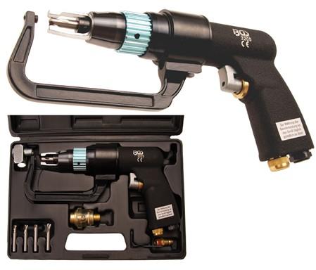 Angol nyelvű leírás (a magyar fordítást lásd lejjebb):new model with guiding leverair consumption 170 l/minmax. drive speed 1600 rpmWorking pressure 6.3 barair connection: 1/4"incl 2x drills/cutters Ø 6.5 mm and 2x drills/cutters Ø 8 mmMagyar fordítás (fordító automata segítségével):új modell vezérlőkarrallevegőfogyasztás 170 l / percmax. hajtássebesség 1600 ford / perc6,3 ba