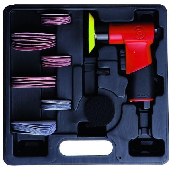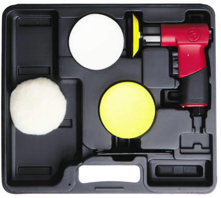Chicago Pneumatic CP7201P MINI Polírozó Levegős polírozó készlet SMART (Smart Area Repair Techique): a kisebb sérülések, karcolások gyors javítására szolgáló eszköz Kicsi és könnyű Maximális felhasználói komfort, kevesebb fáradság Gyors munkavégzés Kitűnő a kis helyeken végzett javításokra 75 mm-es tépőzáras tányér Gumírozott markolattal, a kényelmes fogásé