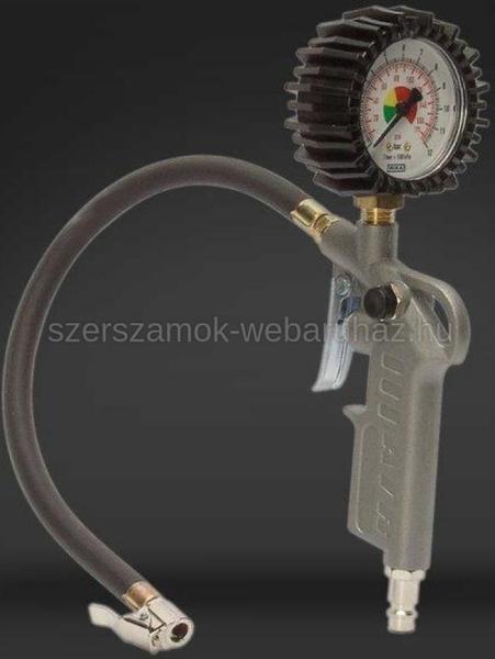 GAV kerékfúvató pisztoly 0-10bar 40cm 60DT63 kalibrált CEE86217 az iSzerszámnál. GAV kerékfúvató pisztoly 0-10bar 40cm 60DT63 kalibrált CEE86217. Alumínium öntvényházas alaptest. Törés elleni védelemmel ellátott manométer. Szövetbetétes gumitömlő. Gyorscsatlakozású kerékszelep. Nagyméretű, érzékeny működtetőkar a fúvatáshoz. Külön leeresztő gombbal ellátva. G