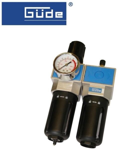 Jellemzők: Komplett sűrítettlevegő kezelőegység (nyomáscsökkentő szelep szűrővel/keverővel) a kompresszorra szerelhető vagy a nyomóvezetékbe helyezhető Funkciók: folyékony részek/szemcsés szennyeződések leválasztása, sűrített levegő olajkenése, üzemi nyomás beállítása (szabályozási tartomány: 0-10 bar) Kialakítás: manométer, forgófej (kimeneti nyomászár),