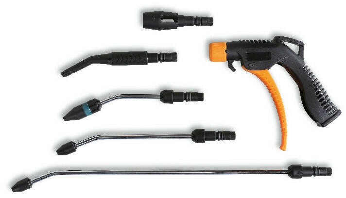 BETA BETA 1949U5 LEFÚVATÓ PISZTOLY 5 FÚVÓKÁVALCsúcsminőségű, ütésálló üvegszálas anyagból 3 acél fúvóka, 100/160/320 mm, karcálló, gumi védősapkával 1 "Turbo" fúvóka üvegszállal erősített műanyagból, biztonsági sapkával 1 forgatható fúvóka, 100 mm, üvegszállal erősített műanyagból Gyorscsatlakozó rendszerMenetes réz betét1/4" GASÜzemi nyomás10 barMax