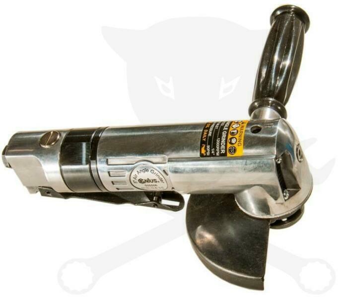 GENIUS Levegős sarokcsiszoló 125 mm 12000 Rpm 1 lóerő - Genius (505506) . Genius Tools - Canada Pneumatikus sarokcsiszoló (köszörű) , levegő meghajtással, oldalmarkolattal. Erős igénybevételre alkalmas Korong (tárcsa) átmérő: 125mm (5") Orsó menetméret: M14 x 2.0P légnyomás: 620kPa, 6.2bar terhelés nélküli fordulat: 12000 fordulat/perc teljes hossz: 228mm teljesítmény: 1.