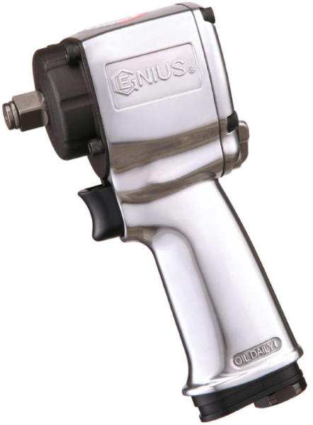 Rövid meghajtó tengelyes légkulcs. Befogás: 1/2" 678Nm légnyomás: 620kPa, 6.2bar max. nyomaték: 678Nm terhelés nélküli fordulat: 11000 fordulat/perc teljes hossz: 99mm levegőcsatlakozás: 1/4" levegő kifújás: alul sebesség 3 - 3 fokozatban állítható. Ütőmechanizmus: ikerkalapácsos (twin hammer) Biztonsági figyelmeztetés: Mindig viseljen védőszemüveget, fülvédőt és vé
