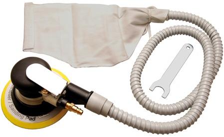 Angol nyelvű leírás (a magyar fordítást lásd lejjebb):for sanding surfaceswith air suction hose and dust bag or collecting the grinding dustSanding pad: Ø 152 mmFree speed: 10,000 rpmSanding stroke: 5 mmAir inlet: 1/4"Air suction hose 10 mm (3/8")Grinding wheel adaptor with 6 suction holesAir consumption 142 l/minWorking pressure 6.3 barDrive shaft thread: M8 x 1.0Magyar fordítás (fordít