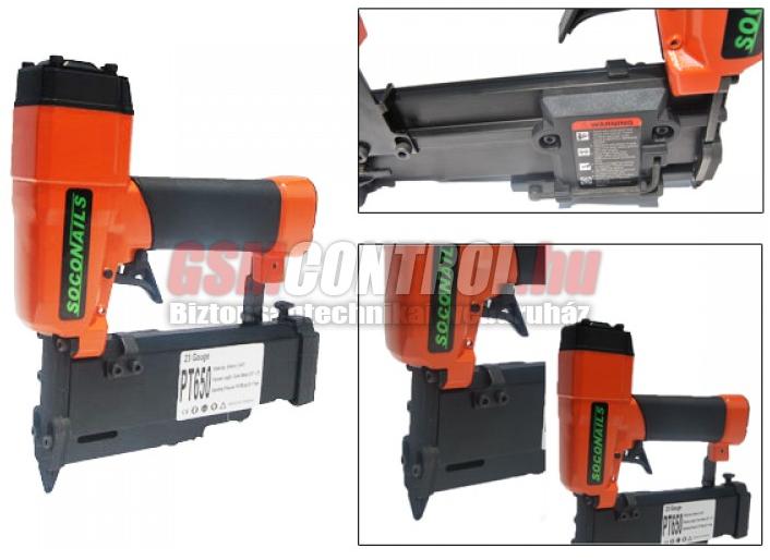 SOCONAILS PT650 Pneumatikus síktáras szögbelövő gép Kiváló minőségű pneumatikus, síktáras szögbelövő gép. Használatát elsősorban könnyű faszerkezetekhez, befejező munkákhoz, dekorációs elemek rögzítéséhez, sarokcsapolások rögzítéséhez, tükrök és képek... SOCONAILS PT650 Pneumatikus síktáras szögbelövő gép Kiváló minőségű pneumatikus, síktáras sz