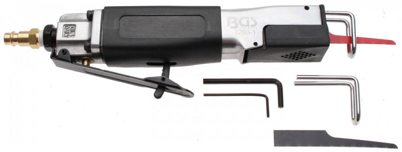 Angol nyelvű leírás (a magyar fordítást lásd lejjebb):strokes per min. : max. 9000sawing depth 4 cmworking pressure: 6.3 bar (90 psi)Compressed air connection 1/4"air consumption: 51 l/min (1.8 cfm)2 saw blades includedWeight 0.65 kgNoise level: LpA = 88.15 dB(A) / LwA = 99.15 dB(A)vibration level: ahd = 15.06 m/s2 K = 1.99 m/s2hose internal diameter: (recommended) 10 mm (3/8)Magyar fordít